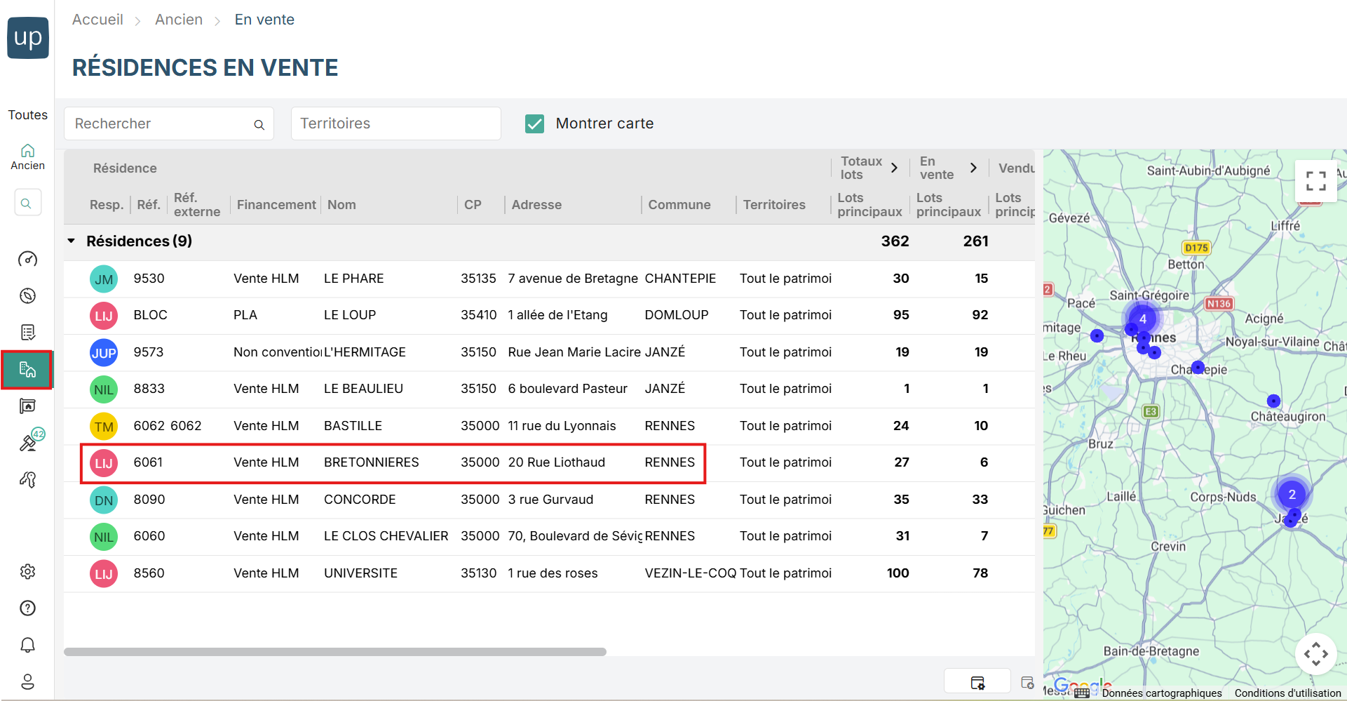 Pour cela, se rendre dans le menu « En montage » ou « Résidences en vente » et double cliquer sur la résidence souhaitée.