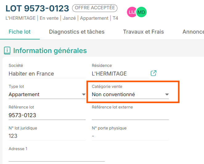 Cette catégorie de vente peut être ensuite affectée au niveau de chaque lot appartenant à cette catégorie.