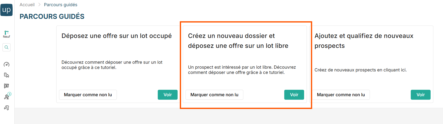 Pour créer un nouveau dossier et déposer une offre sur un lot libre non conventionné, vous pouvez suivre le parcours guidé